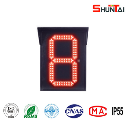 公司開發(fā)的筆段式倒計(jì)時(shí)顯示器采用進(jìn)口超高亮度LED作為光源,具有功耗低、亮度高、使用壽命長(zhǎng)等特點(diǎn),各項(xiàng)指標(biāo)符合GA/T 508-2014標(biāo)準(zhǔn)。